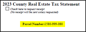 Your Parcel Identification Number is shown on the top left corner of your property tax statement.